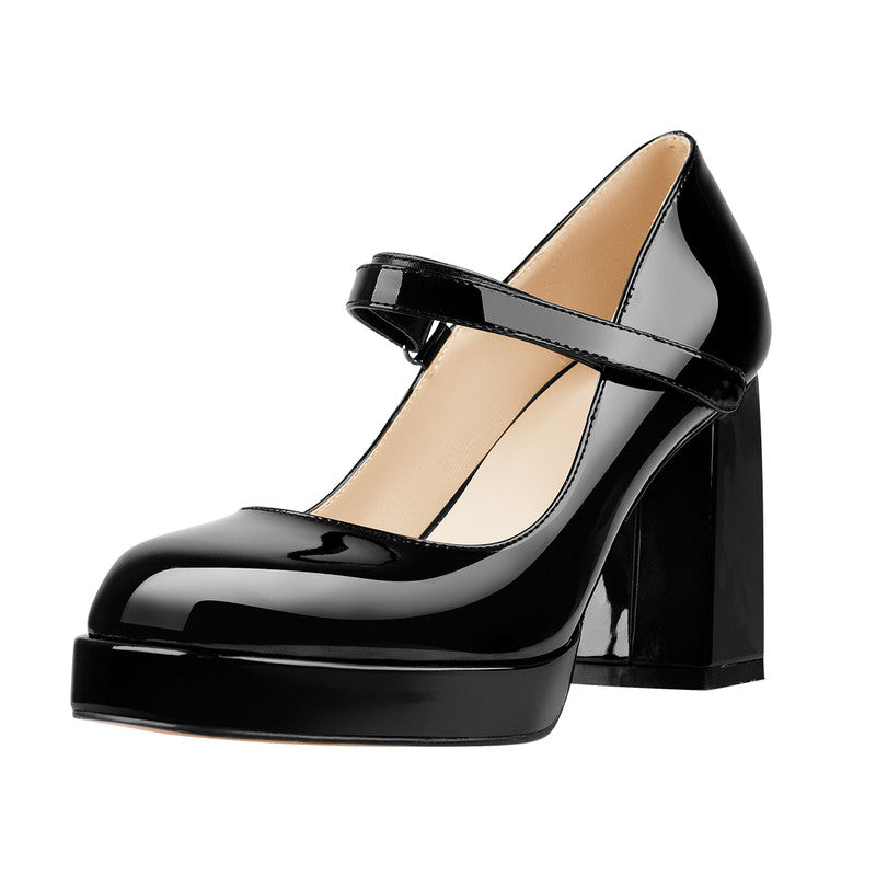 Plateau Mary Janes mit Blockabsatz Riemchenpumps Quadratischer Zehenpartie