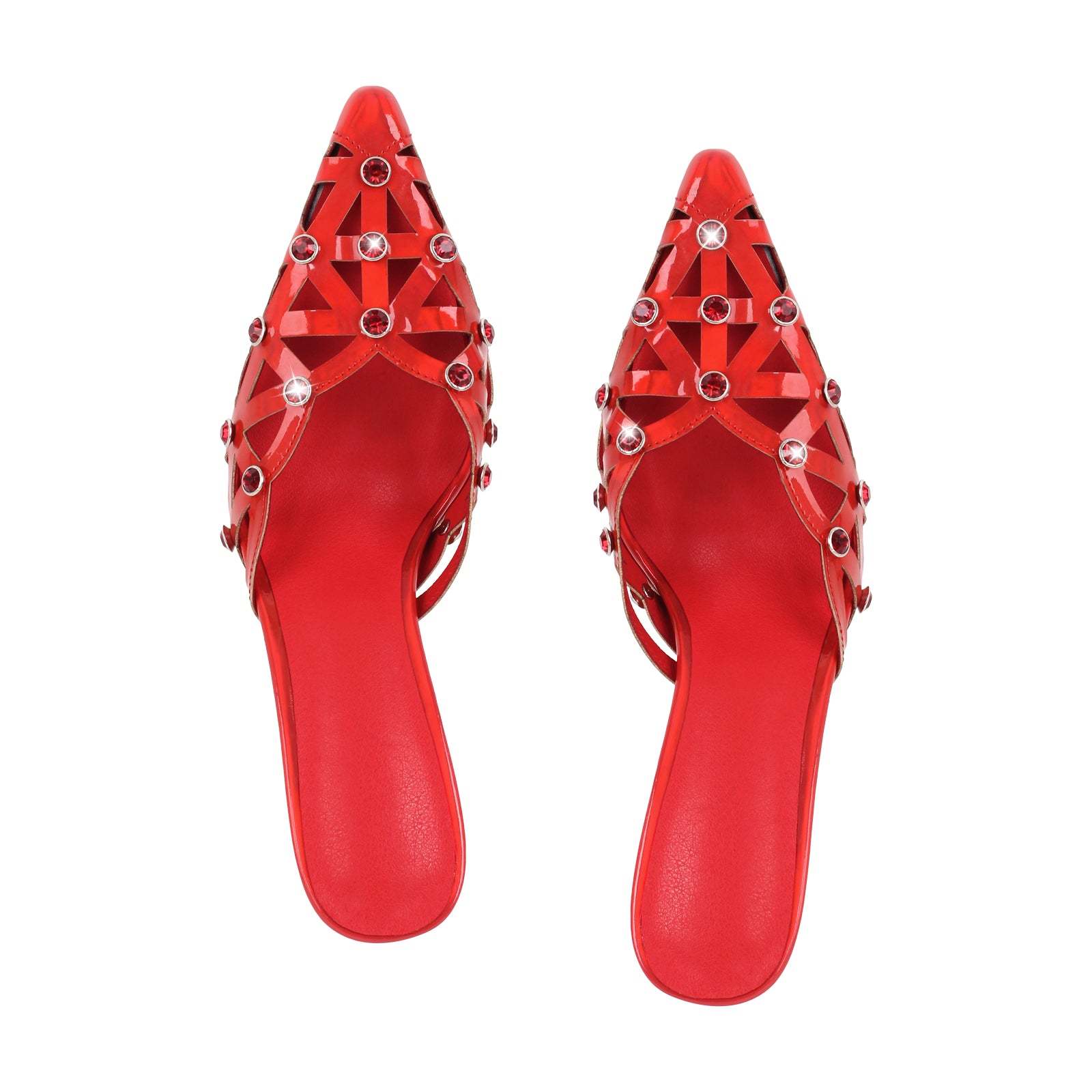 Pantoletten mit Absatz Slip On Pumps Abendschuhe verzierte Schmucksteinen