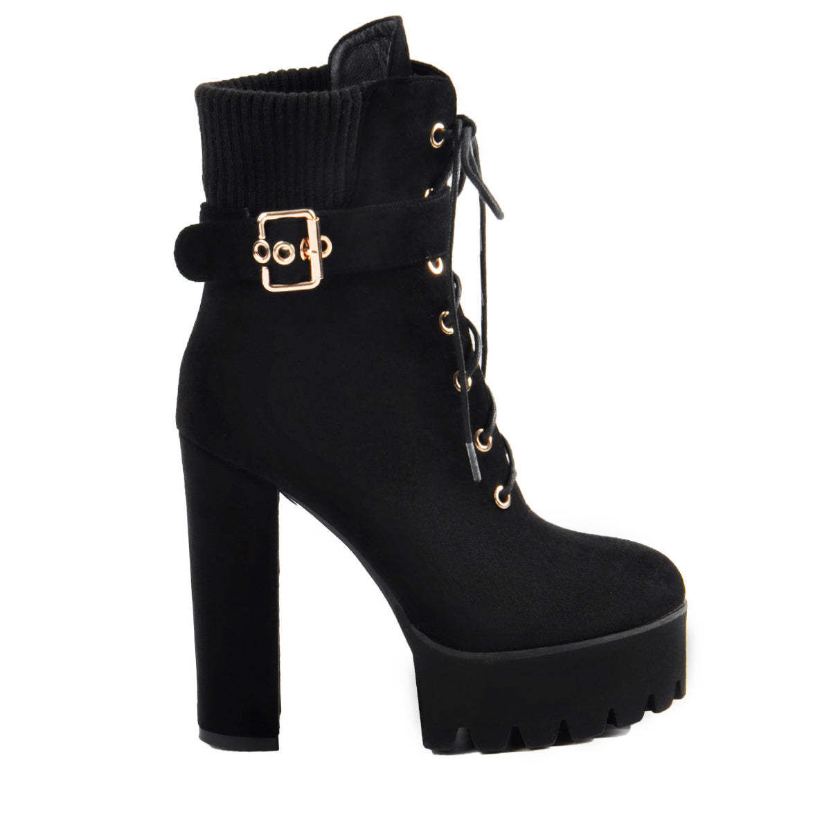 Plateau Kurzschaft Schnürstiefeletten verzierte Schnallen Faux Suede